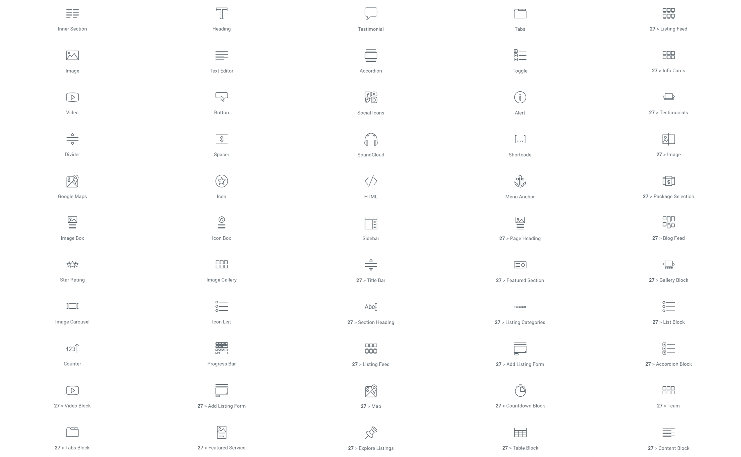 All elementor widgets